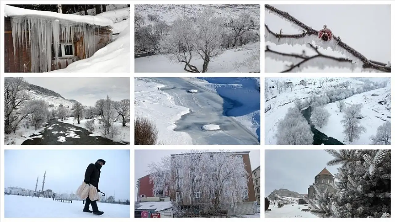 Kars’ta ise termometreler sıfırın altında 16 dereceyi gösterdi. Soğuk hava nedeniyle bitkiler ve ağaçlar kırağıyla kaplanırken, ortaya kartpostallık görüntüler çıktı. Sarıkamış ilçesinde camlar buz tuttu, çatılarda buz sarkıtları oluştu ve Acısu Deresi tamamen dondu. Vatandaşlar araçlarını battaniye ve brandalarla sararak soğuktan korumaya çalıştı. Esnaf ise iş yerlerinin önünde biriken kar ve buzları temizledi.
