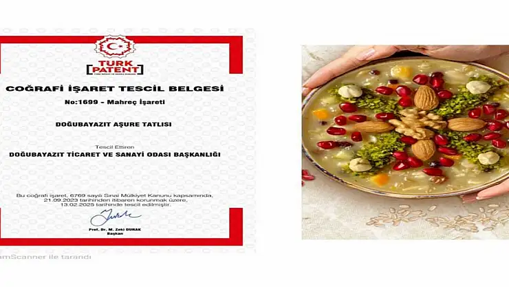 Doğubayazıt Ticaret ve Sanayi Odası'nın girişimleriyle, Doğubayazıt Aşure Tatlısı'nın coğrafi işaret tescili alınarak resmiyet kazandı.