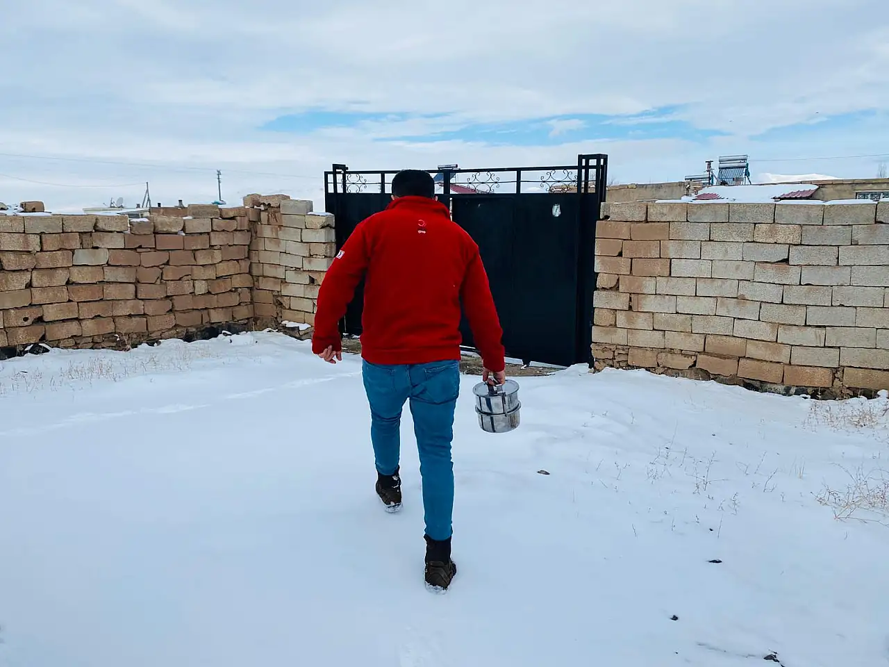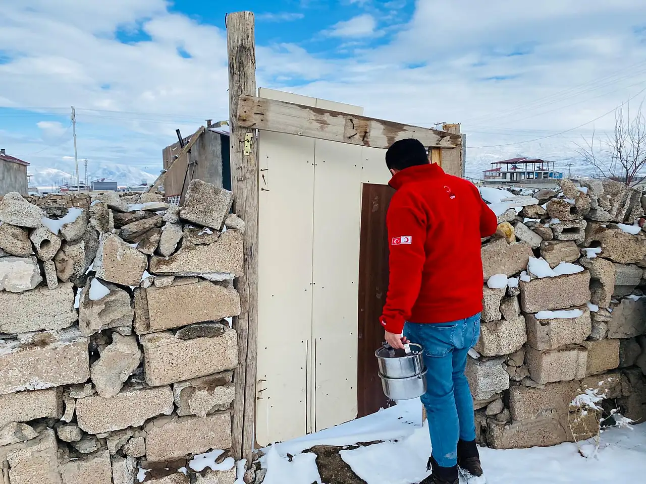 Doğubayazıt Kızılay Aşevi, kış şartlarına rağmen yaşlı vatandaşlara sıcak yemek ulaştırıyor.