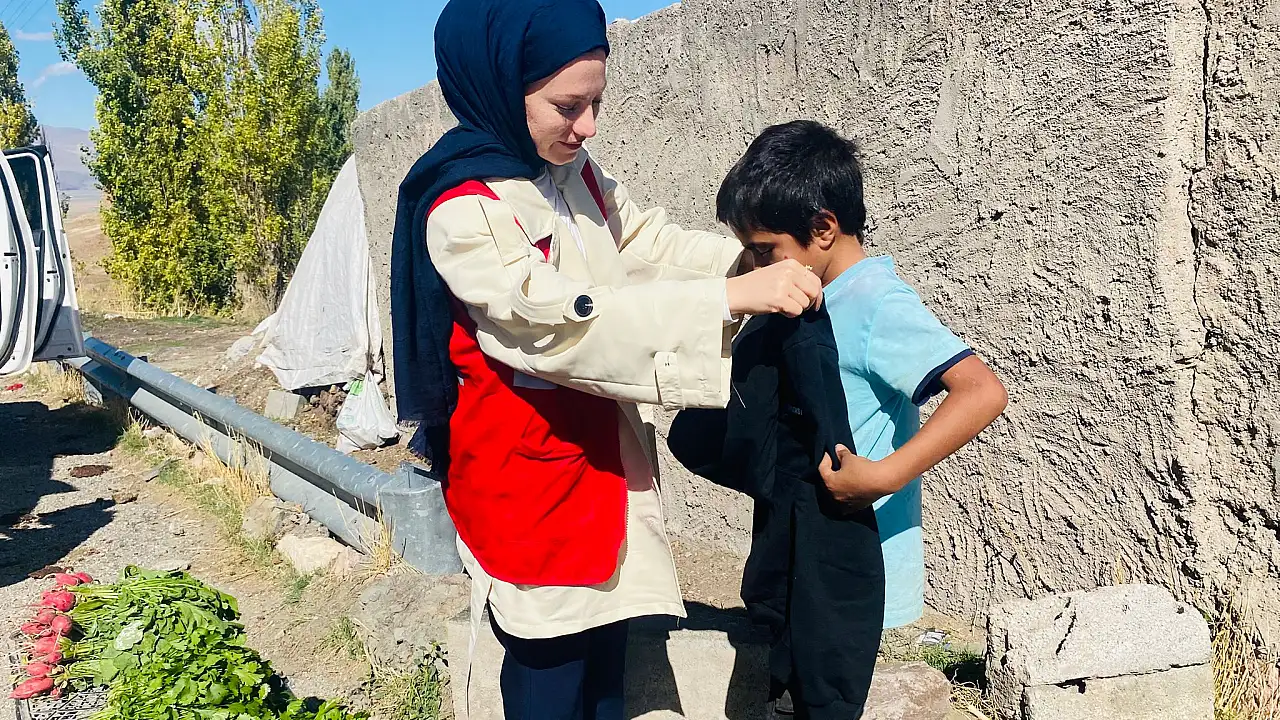 Doğubayazıt'ta Kızılay, Dostali Köyü'ndeki çocuklara giyim yardımı dağıttı. Kızılay Başkanı Kemal Şahin, yardım faaliyetlerinin önemi hakkında konuştu.