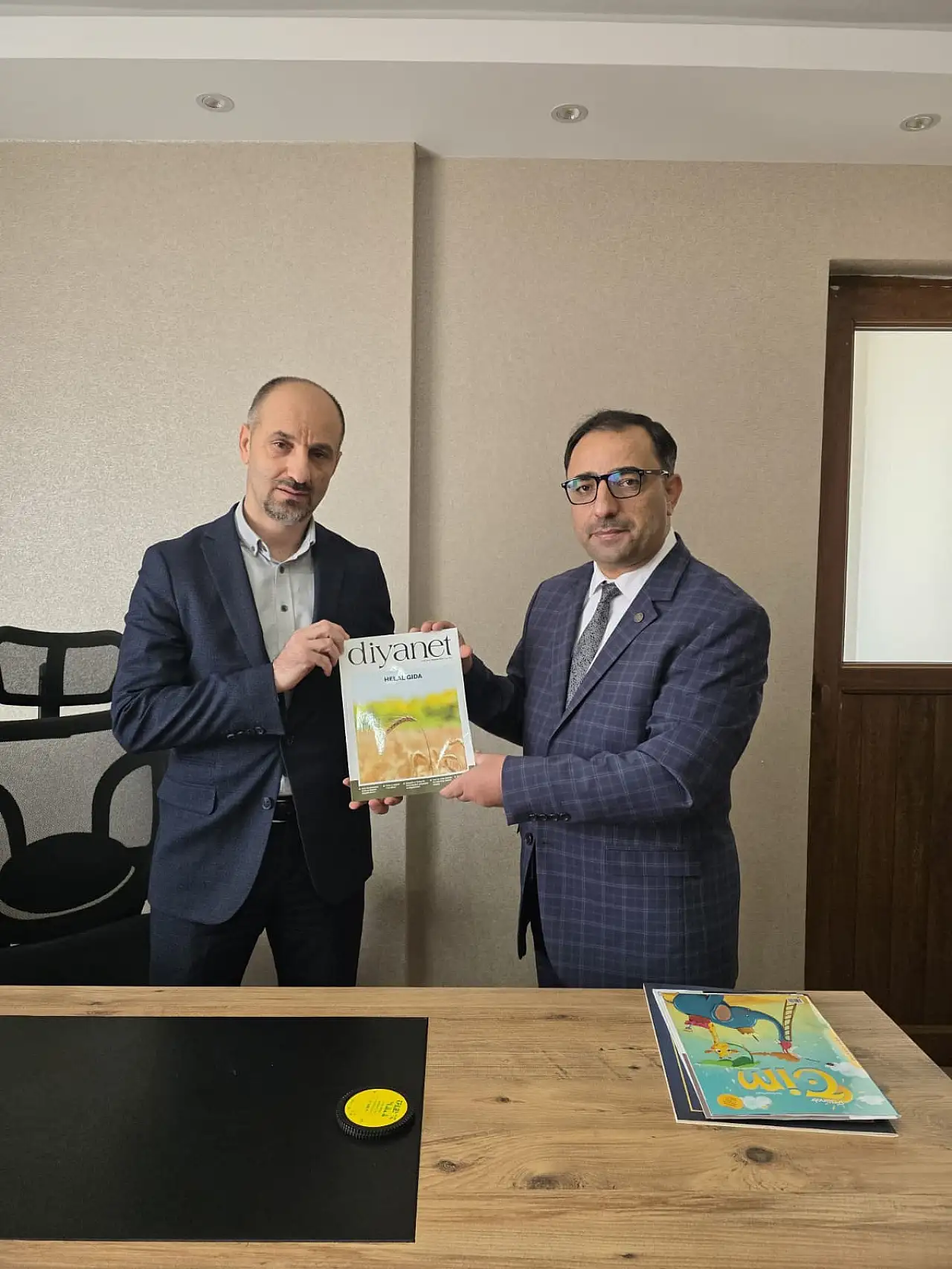 Doğubayazıt'ta Ahilik kültürünü yaşatma amacıyla gerçekleştirilen buluşmada İlçe Müftüsü İsa Demirkaynak ve beraberindeki heyet, Esnaf ve Sanatkârlar Odası Başkanı Güney Erdoğan ile bir araya geldi.
