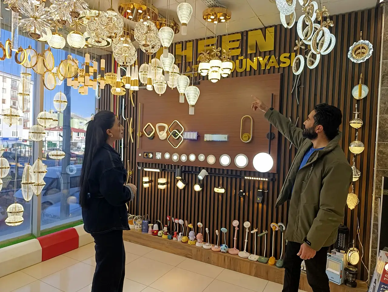 Doğubayazıt'ta Mertoğlu Pasajı'nda faaliyet gösteren Ahsen Aydınlatma'da sergilenen ürünlere vatandaşların ilgisi artıyor.