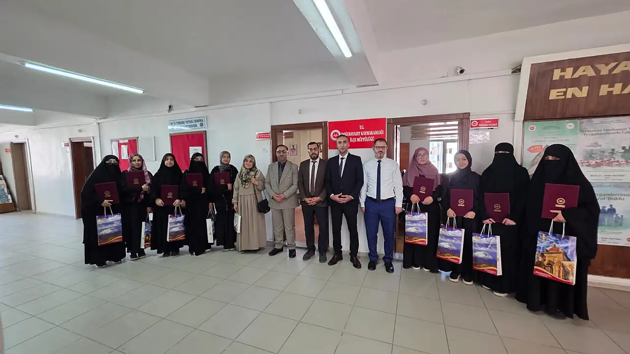 Camiler ve Din Görevlileri Haftası dolayısıyla Doğubayazıt İlçe Müftülüğü’ne anlamlı bir ziyaret gerçekleştirildi. İlçede faaliyet gösteren 15 Temmuz Şehitleri Yatılı Hafızlık Kız Kur’an Kursu 2025 yılı mezunları, öğreticileri eşliğinde İlçe Müftüsü İsa Demirkaynak ve müftülük personelini ziyaret etti. Ziyarette, hafız öğrenciler mezuniyetlerinin ardından ilk kez İlçe Müftülüğünü toplu olarak ziyaret ederek, Din Görevlileri Haftası’nı kutladılar. Öğrenciler, kurs sürecinde kazandıkları tecrübeleri paylaşırken, din görevlilerine emekleri için teşekkür ettiler.