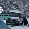 Doğubayazıt'ta kar sürprizi: Doğa severler servis aracını iterek kurtardı