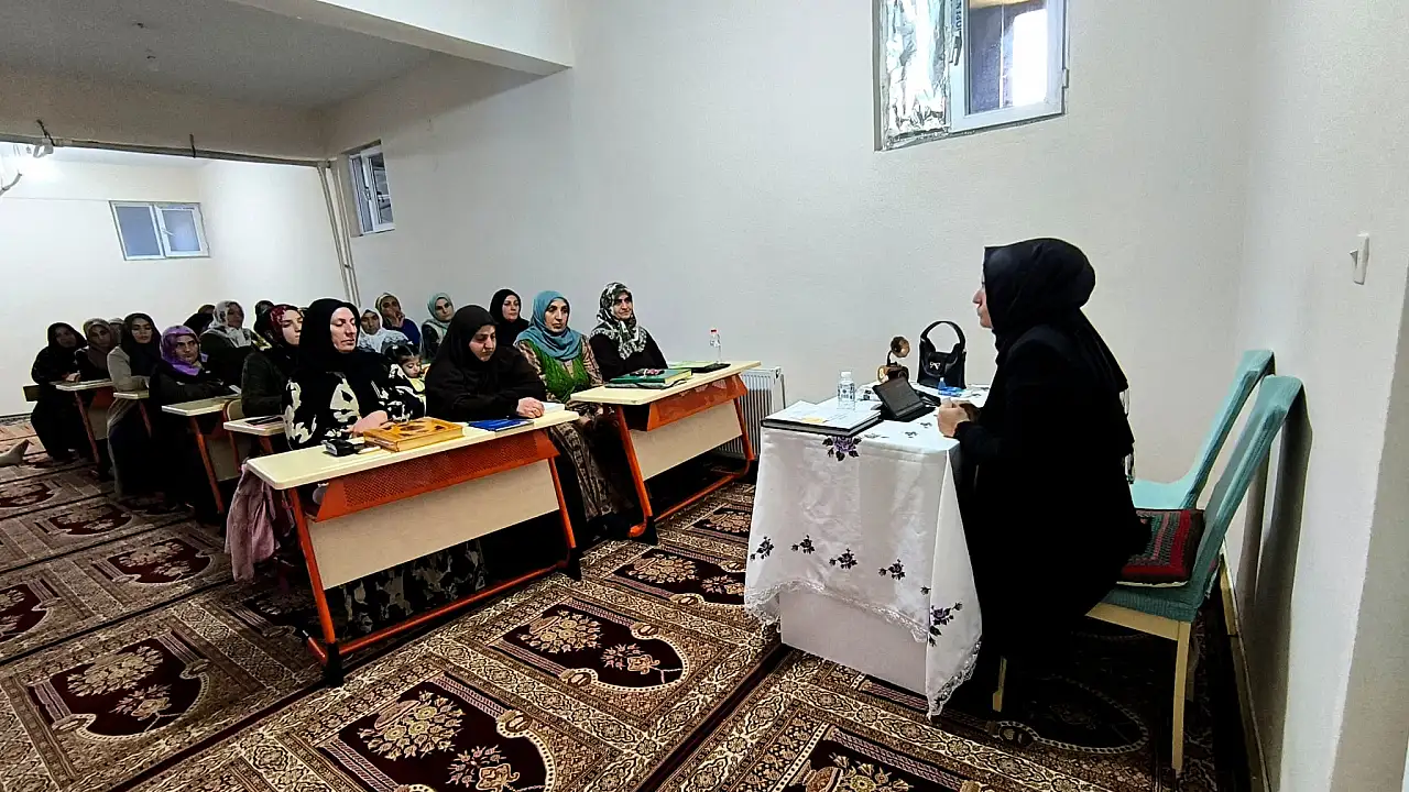 Vaaz ve irşat faaliyetleri kapsamında Doğubayazıt'ı ziyaret eden Ağrı İl Müftü Yardımcısı Lütfiye Ötken, Hz. Ebubekir Camii Kur'an Kursu'nda eğitim alan kadın kursiyerlerle bir araya gelerek Kur'an eğitimi ve manevi gelişim üzerine sohbet etti.