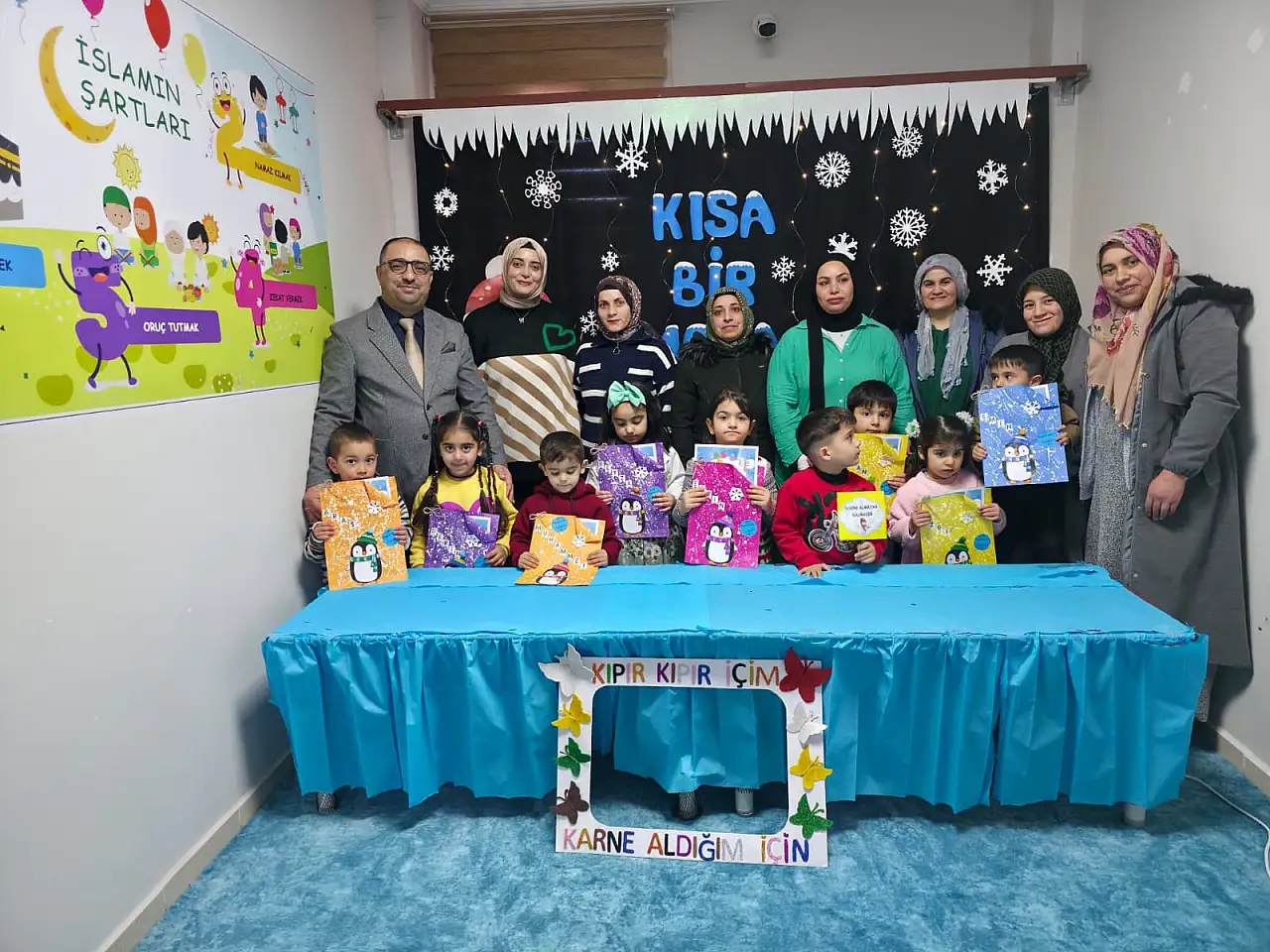 İsra Miraç 4-6 Yaş Kur'an Kursu öğrencileri, eğitim dönemi sonunda karnelerini alarak sevinç yaşadı.