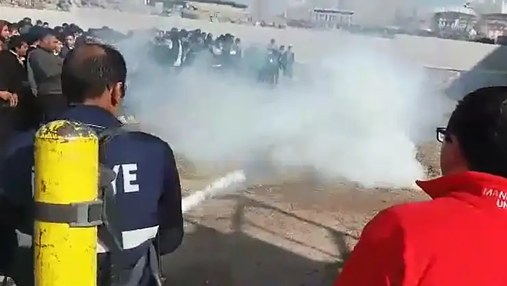 Doğubayazıt Belediyesi İtfaiye Müdürlüğü ekipleri 1-7 Mart Deprem Haftası nedeniyle Yatılı Bölge İlköğretim Okulu (YİBO) ve Çok Amaçlı Lise’de yangın ve kurtarma tatbikatı düzenlendi. Çok Amaçlı Lise de yapılan tatbikat öncesinde öğrencilere deprem ve yangın sırasında nasıl davranmaları gerektiği uygulamalı olarak anlatıldı. Ardından itfaiye ekipleri tarafından rol gereği hastalanan bir öğrenci sağlık ekipleri tarafından hızlı bir şekilde sedye ile ambulansa taşındı. Tatbikatın devamında okul bahçesinde ateş yakıldı ve itfaiye ekipleri çalınan srenin ardından yangına müdahale etti. Kısa sürede söndürülen yangın öğrenciler tarafından alkış aldı. Programda son olarak okulun 3’üncü katında mahsur kalan bir öğrenci itfaiye ekipleri tarafından kurtarıldı.