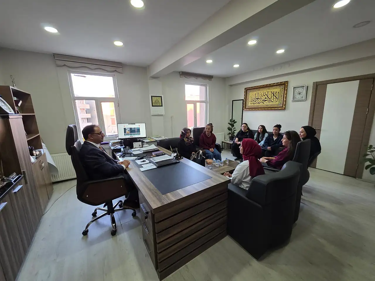Doğubayazıt’ta 1–7 Ekim Camiler ve Din Görevlileri Haftası kapsamında anlamlı bir ziyaret gerçekleştirildi. İlçe Müftülüğü Bayan Gençlik Koordinatörlüğü tarafından organize edilen etkinlikte, Ahmed-i Hani Meslek Yüksekokulu’nda öğrenim gören KYK kız öğrencileri, Gençlik Koordinatörü Dilan Özer eşliğinde İlçe Müftüsü İsa Demirkaynak’ı makamında ziyaret etti.