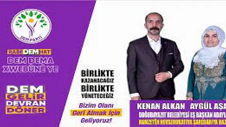 Ağrı’nın Doğubayazıt İlçesi'nde sürpriz yaşanmadı ve DEM Parti Eş Başkan Adayları Aygül Aşan ve Kenan Alkan seçimi kazanarak Doğubayazıt’ın yeni belediye başkanı oldular.