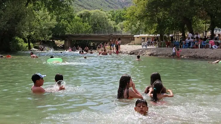 Son dönemlerde havaların mevsim normallerinin üzerinde seyrettiği Doğu Anadolu Bölgesi'nde vaatandaşlar akarsularda serinlemeye başladı.