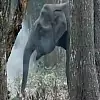 Hindistan'da ulusal parkta bulunan bir filin ağaç kenarında bulunan sakinleştirici madde çektiği görüntüsü kaydedildi.