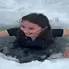 Eksi 23 derecede cesaret gösterisi: Buzları kırıp suya atladı