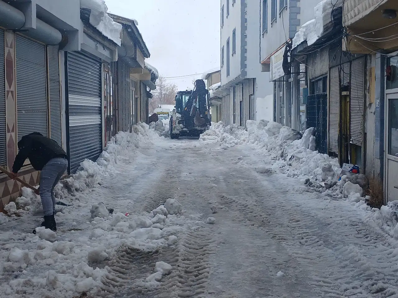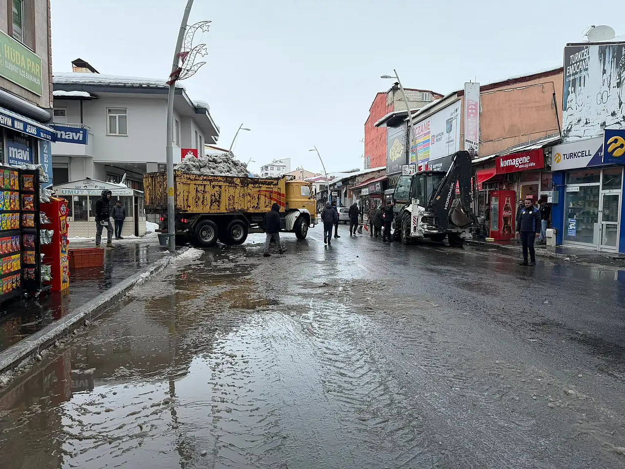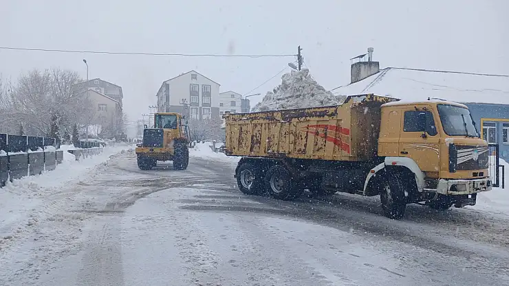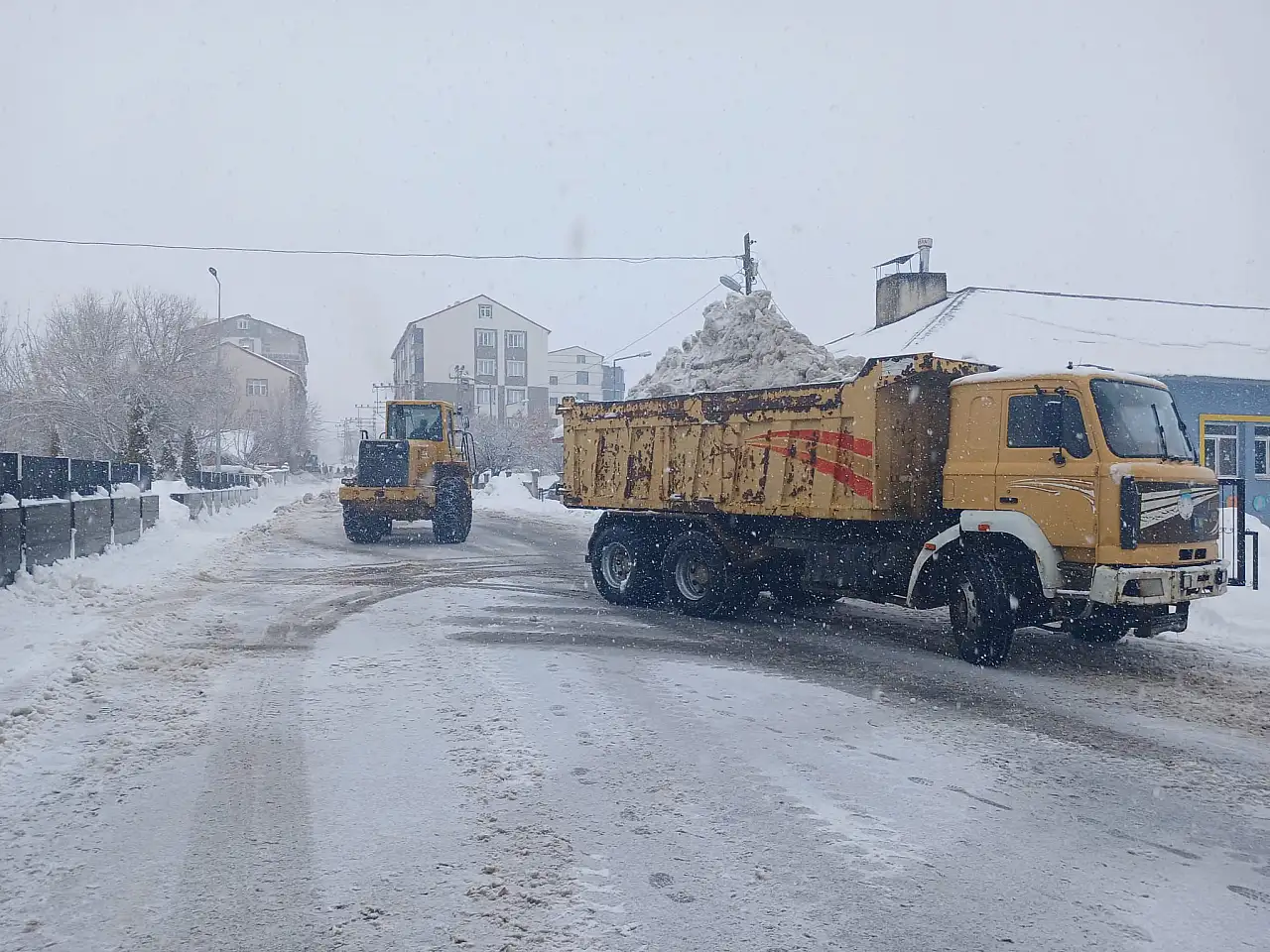 Eleşkirt'te etkili olan kar yağışına karşı belediye ekipleri aralıksız çalışma yürütüyor.