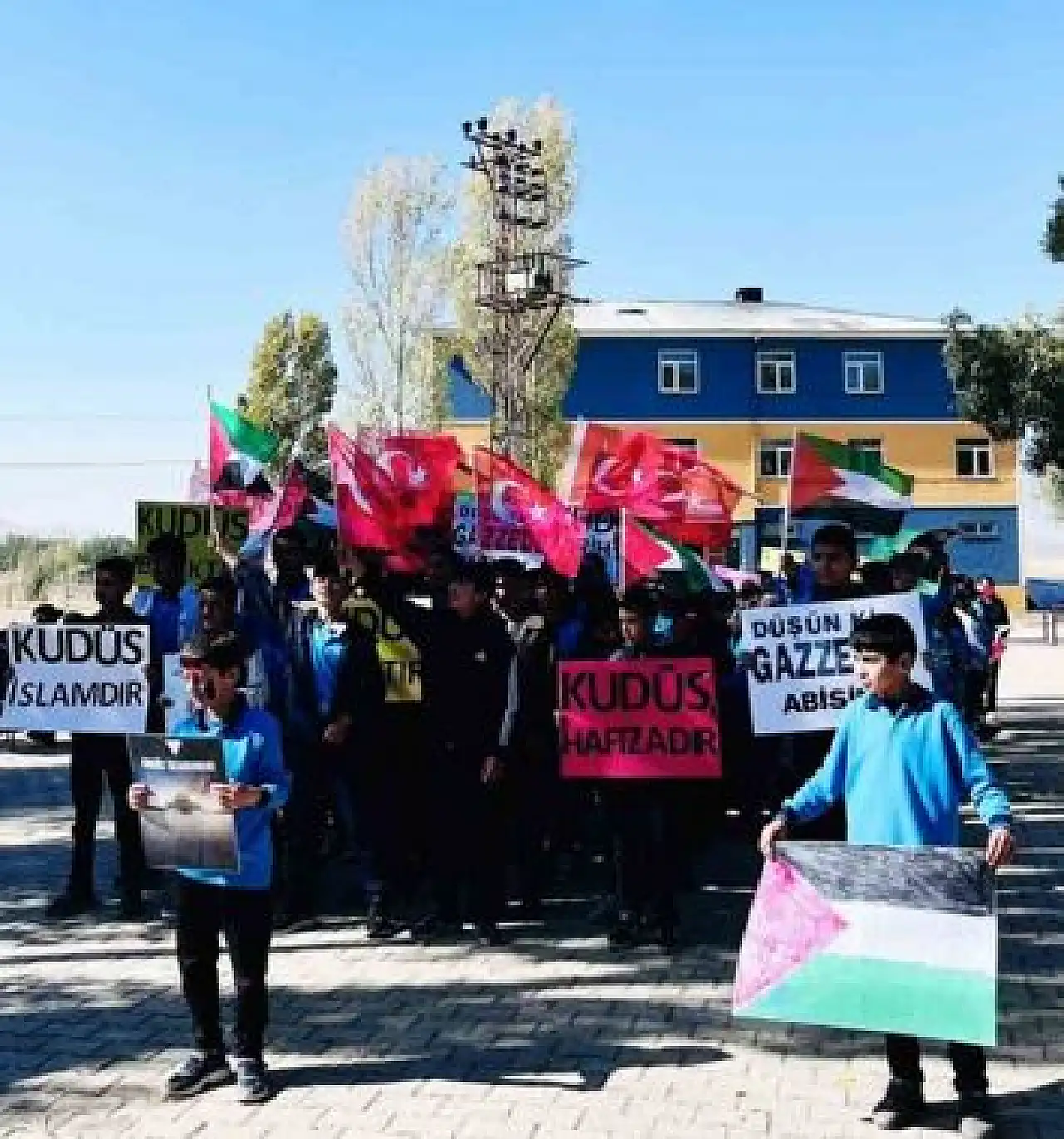 Van’ın Özalp ilçesindeki Emek Ortaokulu, Filistin’e destek etkinlikleri kapsamında yardım kampanyası düzenledi.