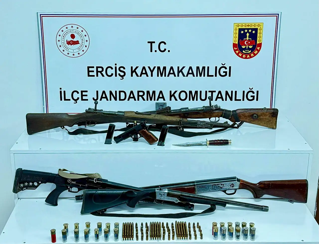 Aynı mahallede 6136 Sayılı Kanun’a muhalefet kapsamında Erciş Jandarma Asayiş Komando Bölük Komutanlığı, Merkez Jandarma Karakol Komutanlığı, Erciş JASAT, Erciş Bomba Arama Köpek Unsuru ve Erciş KOM Takip Timi’nin katılımıyla gerçekleştirilen adli aramalarda; uzun namlulu silahlar, tabanca, av tüfekleri, fişekler ve kesici aletler ele geçirildi. Olayla ilgili 1 şüpheli gözaltına alındı.