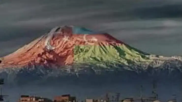 Ağrı Belediye Başkanı Savcı Sayan'ın, Ağrı Dağı'na yansıtılmış Türk-Azerbaycan Bayraklarının yer aldığı bir fotoğraf paylaşarak, bu projeyi hayata geçireceklerini açıkladı.