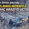 Erzurum-Artvin yolunda buzlanma nedeniyle araç araziye uçtu