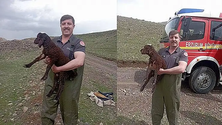 Ekipler, yaklaşık yarım saatlik çalışmayla koyunu mahsur kaldığı yerden kurtararak sahibine teslim etti.