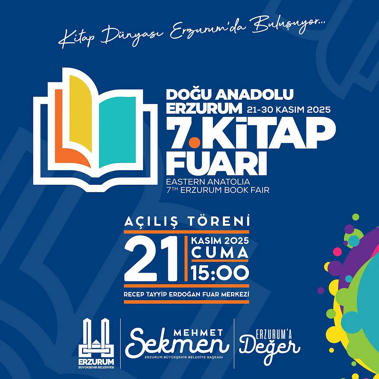 Erzurum Büyükşehir Belediye Başkanı Mehmet Sekmen, fuarla ilgili yaptığı açıklamada, “Şehrimizin kültürel hayatına katkı sunacak, kitapla buluşmayı seven her yaştan okurumuza ilham verecek bu özel fuarımıza tüm hemşehrilerimizi bekliyoruz” dedi.