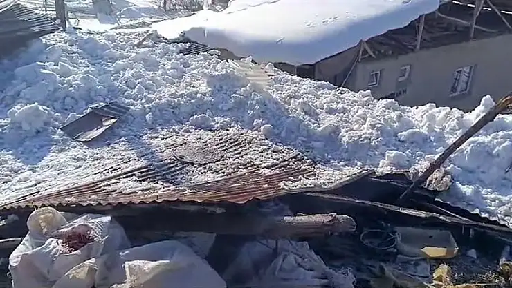 Erzurum'da kar yağışı çatıları çökertti