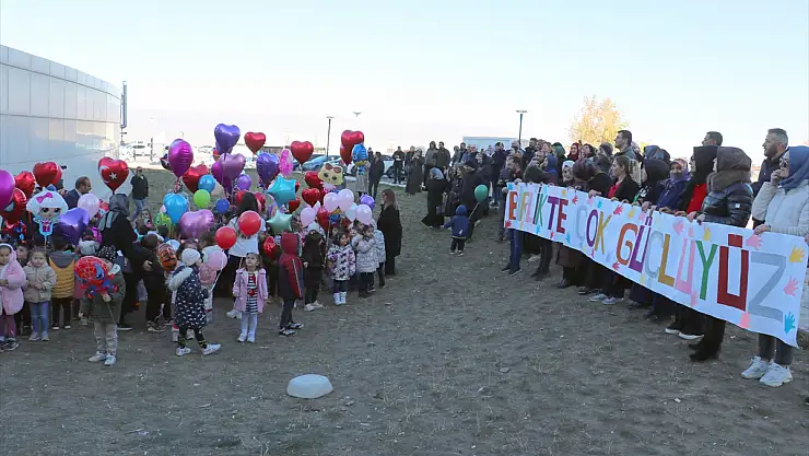Erzurum'da anaokulu öğrencileri, lösemili çocukların tedavi gördüğü hastanenin bahçesinde rengarenk balonları gökyüzüne bıraktı.
