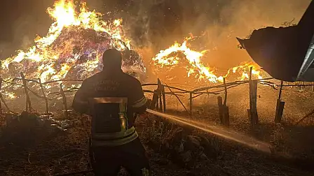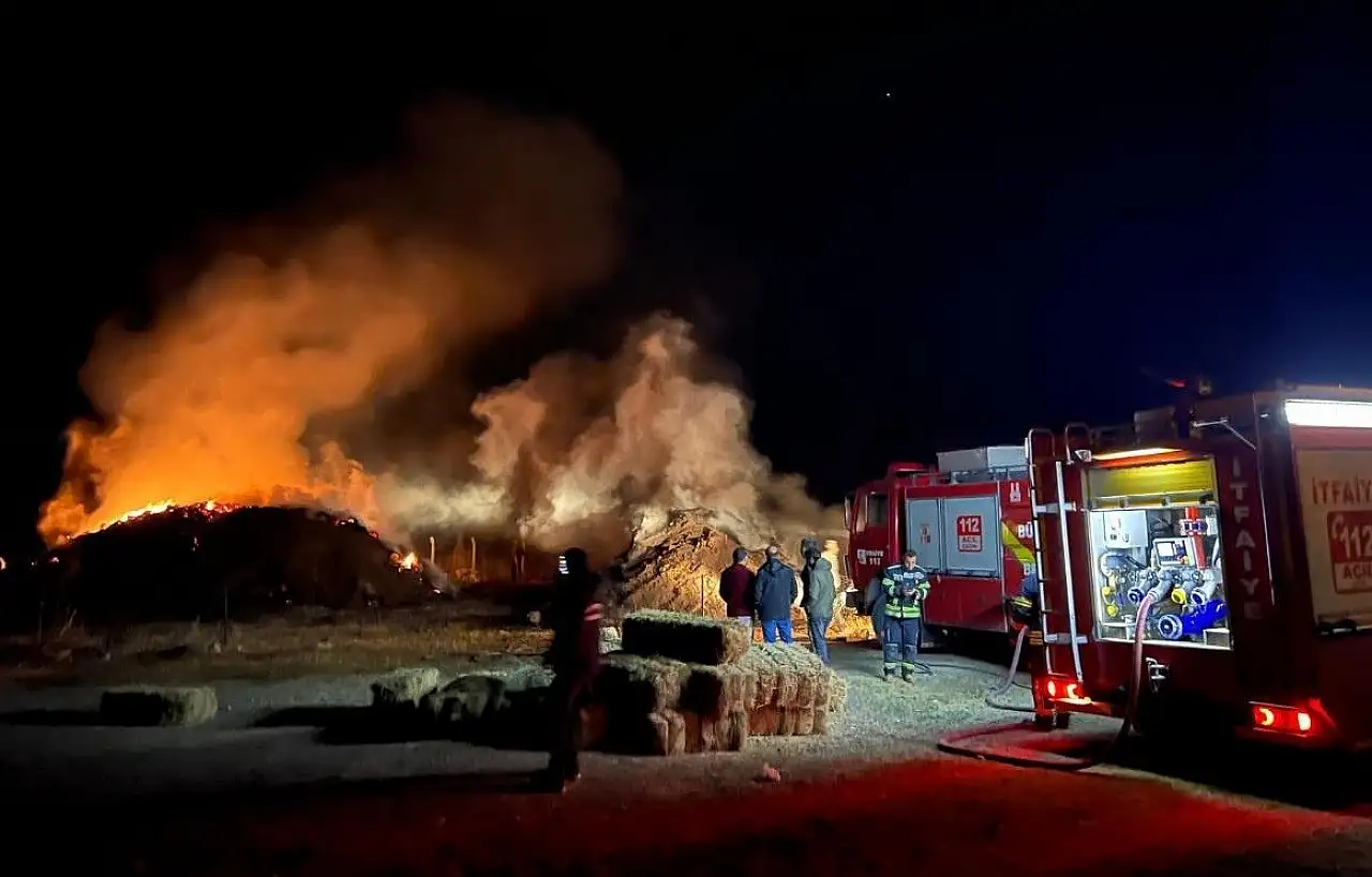 Yangında mahalle muhtarı Aydın Üzer ve kardeşi Ruhsat Üzer’e ait 2 bin 500 balya ot kül olurken yangınla ilgili inceleme başlatıldı.