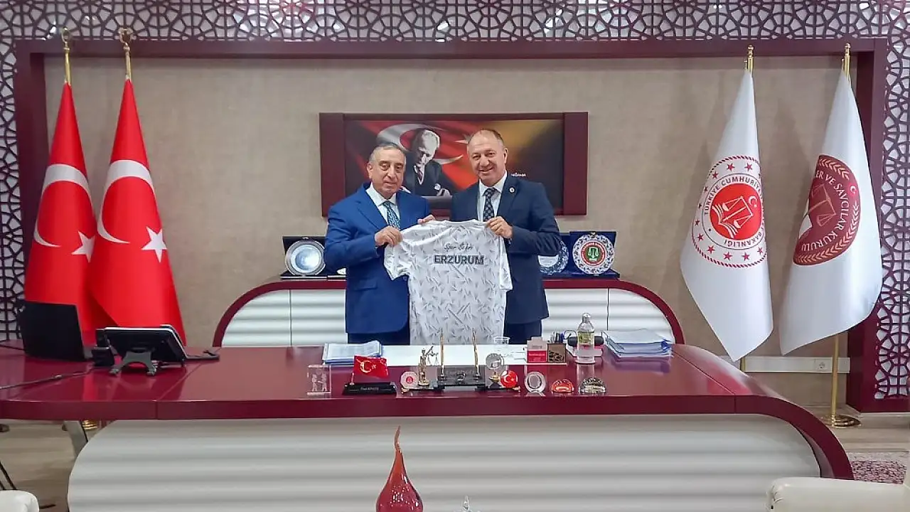 Erzurum Gençlik ve Spor İl Müdürü Levent Çakmur, Erzurum Bölge Adliye Mahkemesi Cumhuriyet Başsavcısı Ünal Birgül’ü makamında ziyaret ederek teşekkürlerini iletti.