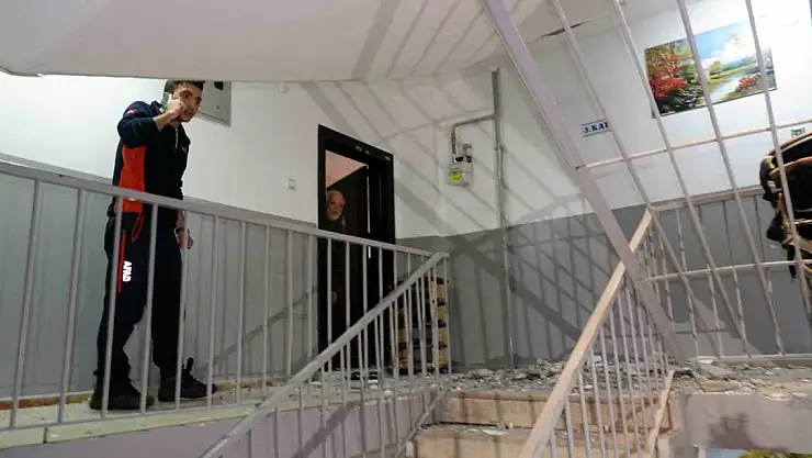 Erzurum'da apartmanın çöken merdiveni korkuttu