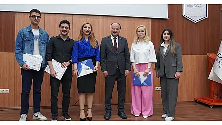 Rektör Çakmak’ın konuşmasın ardından devam eden tören, öğrencilerin ve danışmanların teşekkür belgelerini alması ve hatıra fotoğrafı çekilmesiyle sona erdi.