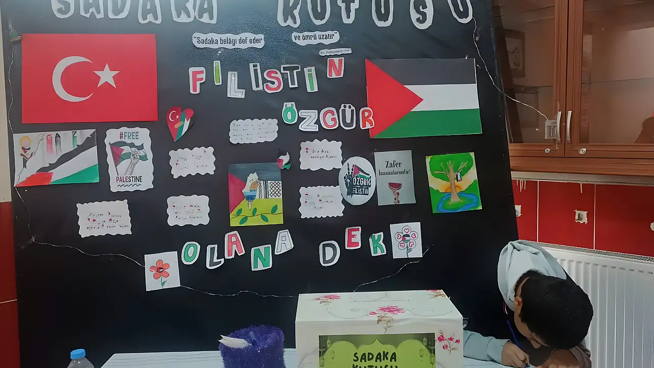 Şehit Emin Güner Anadolu İmam Hatip Lisesi ortaokul öğrencileri, Filistin'deki kardeşlerine destek olmak amacıyla kendi el emekleriyle sadaka kutuları hazırladı.