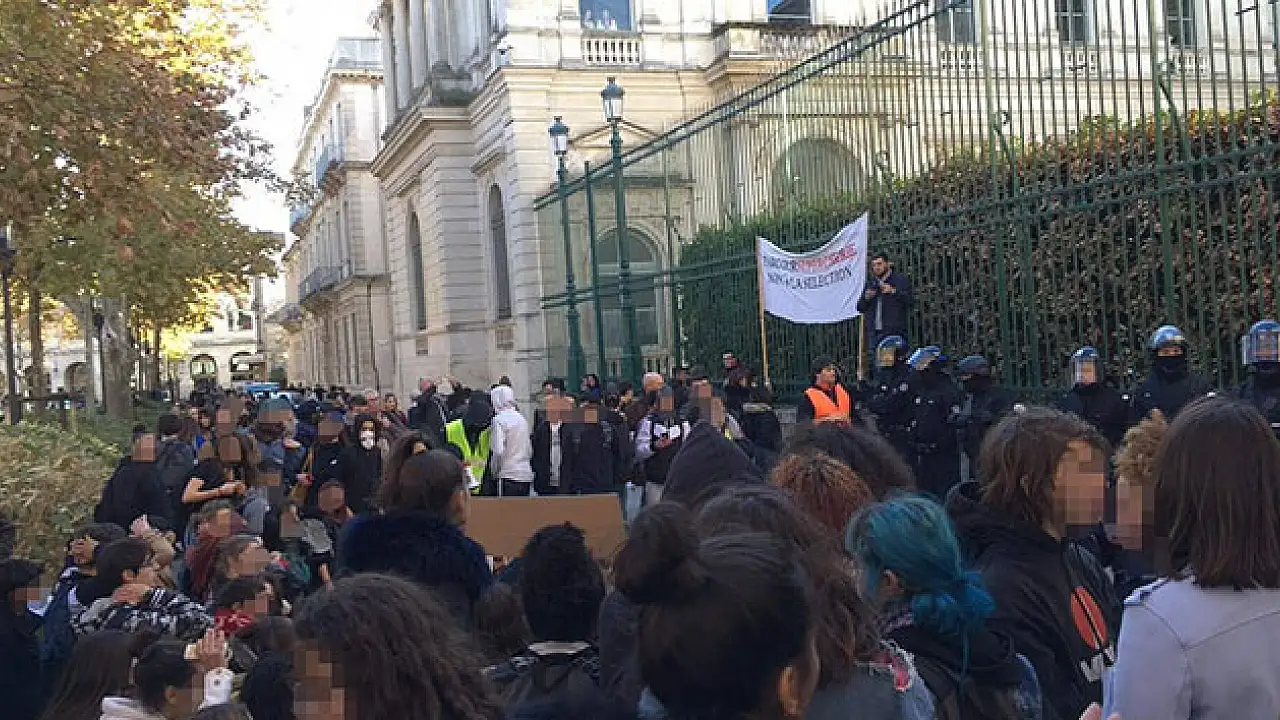 Öğrencilerden bazıları "Navigasyona ihtiyacımız var, geleceğimizi kaybettik" ve "Macron istifa" sloganları atarken, bazı eylemciler çöp kutularını yaktı. Polis öğrencilere biber gazı ile müdahale etti.
