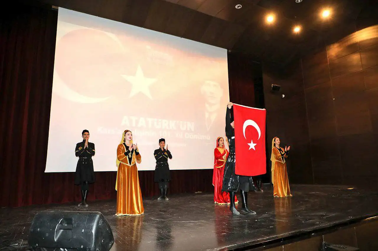 Kars’ta, Gazi Mustafa Kemal Atatürk’ün şehri ziyareti ve Gazi Kars olmasının 101. yıl dönümü dolayısıyla özel bir kutlama programı düzenlendi. GaziKars Kültür Merkezi’nde gerçekleştirilen etkinliğe Kars Valisi Ziya Polat da katıldı.