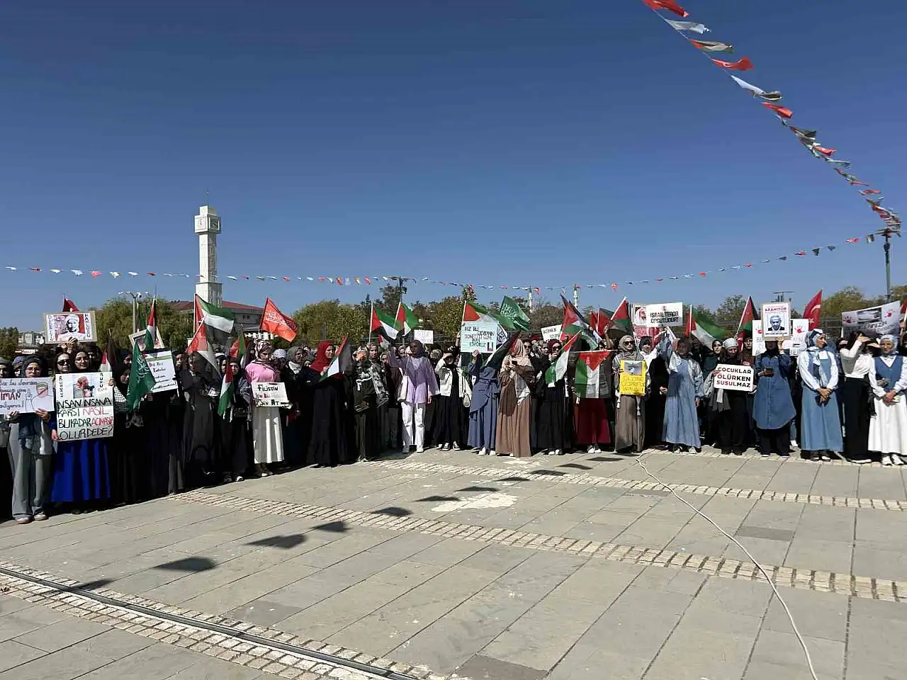 "Vicdan ve merhametini al, yürüyüşe gel" çağrısıyla gerçekleştirilen etkinlikte öğrenciler, akademisyenler ve üniversite personeli Filistin halkına destek mesajı verdi. Katılımcılar, ellerindeki Filistin bayrakları ve pankartlarla Gazze’deki saldırılara tepki gösterirken, sık sık "Kahrolsun İsrail" ve "Gazze yalnız değildir" sloganları attı.