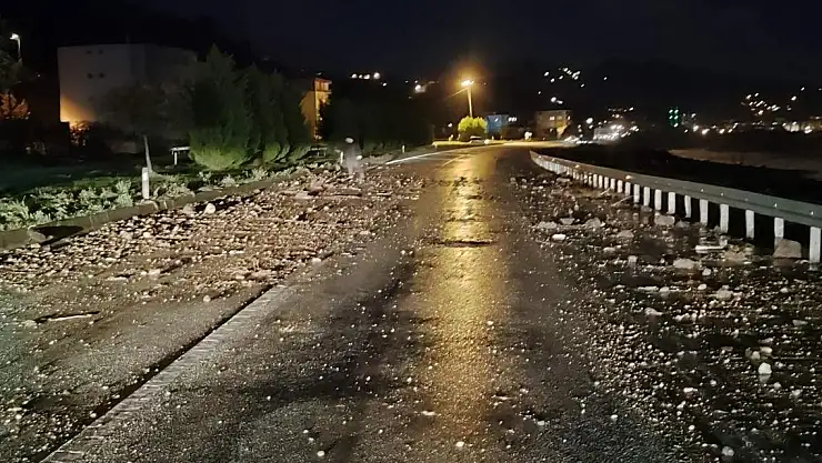Karayolları ekiplerinin önlem aldığı yolun bir bölümünde ulaşım tek şeritten sağlanıyor.