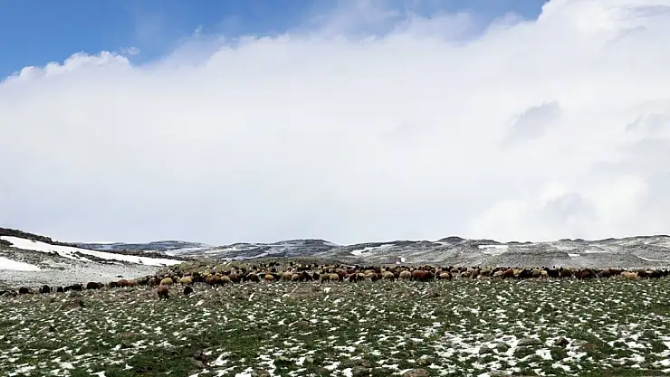 Havaların ısınmaya başlamasıyla bir süre önce yola koyulan göçerler, küçükbaş hayvan sürüleriyle Ağrı'nın Taşlıçay ilçesinde bulunan yüksek rakımlı Sinek Yaylası'nda kar yağışına yakalandı.