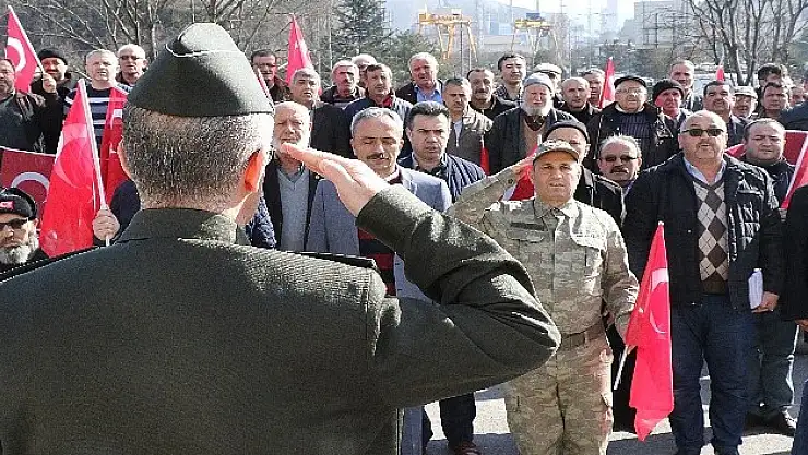Mahalle muhtarlarının da destek verdiği yürüyüşte ellerinde Türk bayrakları ve sloganlar eşliğinde askerlik şubesine kadar yürüyen vatandaşları burada Garnizon Komutanı ve Askerlik Şube Başkanı Albay Tekin Nemlioğlu karşıladı.