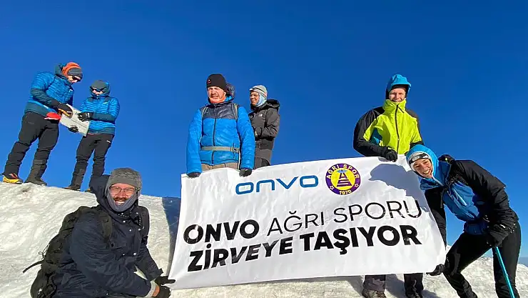 Ağrı'da, Ağrı 1970 Sporlu gönüllü bir grup dağcı, dünyaca ünlü Ağrılı Marka ONVO'nun, takımlarına sponsor olmasını Ağrı Dağı'na zirve tırmanışı gerçekleştirerek kutladı