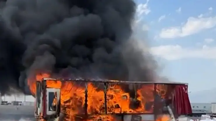 Gürbulak Sınır Kapısı'nda park halinde duran bir tırın dorsesi, henüz belirlenemeyen bir sebepten dolayı alev aldı. Kısa sürede büyüyen yangın, dorsenin tamamen alevler içinde kalmasına yol açtı. Olay yerinde bulunan diğer tır şoförleri ve sınır kapısı çalışanları, yangının hızla yayılmasıyla büyük bir korku yaşadı. Park alanında itfaiye ekiplerinin bulunmaması tepkilere neden olurken, alevlerin diğer araçlara sıçramaması için sürücüler tırlarını uzaklaştırdı.