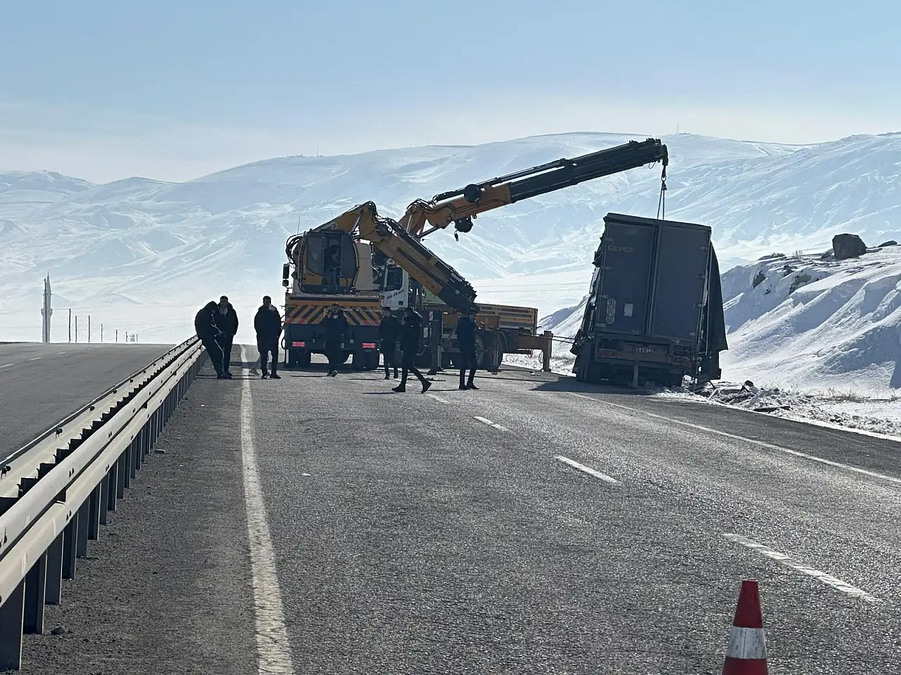 Kazanın ardından yol güvenliğinin sağlanması ve devrilen tırın kaldırılması için çalışma başlatıldı. Vinç ve çekici yardımıyla tırın yoldan kaldırılması için yapılan çalışmaların ardından yolun kısa süre içinde kontrollü şekilde yeniden ulaşıma açılmasının planlandığı bildirildi.
