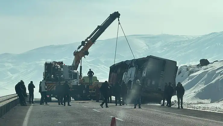 Ağrı'nın Doğubayazıt ilçesinde Gürbulak Sınır Kapısı istikametinde meydana gelen tır kazasında araç yoldan çıkarak devrildi.