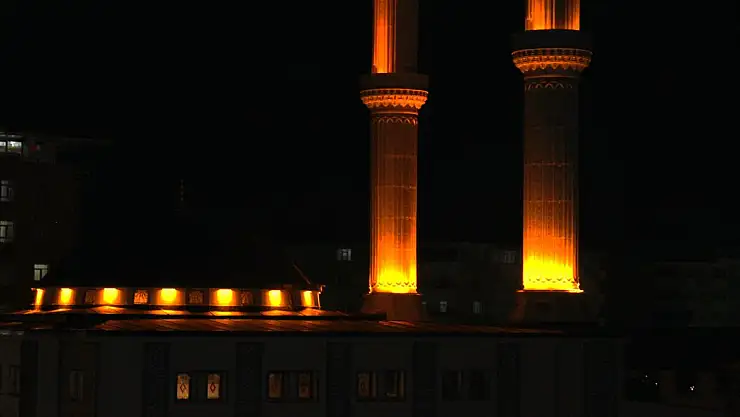 Ağrı'nın Fırat Mahallesi'nde bulunan Hacı Halis Ünsal Camii, ışıklandırılan minareleriyle adeta şehre bir huzur ve estetik kattı.
