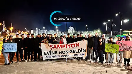 Şampiyon ekip, gece saatlerinde Ağrı’ya döndü. Ağrı Millet Bahçesi’nde düzenlenen karşılama töreninde davul-zurna eşliğinde büyük bir coşku yaşandı. Öğrenciler, öğretmenler ve aileler tarafından hazırlanan “Şampiyon Evine Hoş Geldin” yazılı pankart, alanda dikkat çekti.