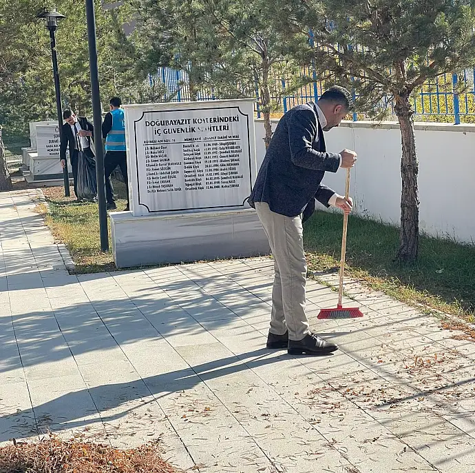 Doğubayazıt Denetimli Serbestlik Müdürlüğü hükümlüleri, şehitlikte temizlik ve bakım çalışması yaptı.