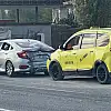 Edinilen bilgilere göre, plakası ve sürücüsü öğrenilemeyen bir kamyonet, kırmızı ışıkta bekleyen 76 T 000 plakalı ticari taksiye çarptı.