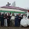 Kar yağışı ve çamura rağmen Iğdır'da bahçede düğün geleneği sürüyor davetliler zorlu hava şartlarını hiçe sayarak halaydan vazgeçmiyor.