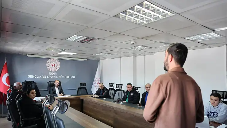 Iğdır'da Sporcu Eğitim Merkezi (SEM) uzmanları, Fizyoterapist ve Spor Beslenme Uzmanı eşliğinde hazırladıkları çalışma planlarını SEM antrenörlerine sundu.