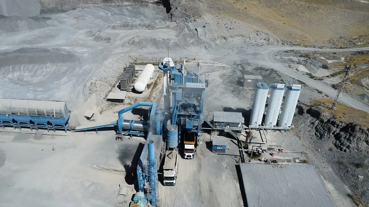 Iğdır İl Özel İdaresi Asfalt Plenti Tesisi, havadan görüntülendi. Saatte 240 ton asfalt üretebilen tesis, kent ve köy yollarının ihtiyacını karşılayarak Iğdır'a modern ve dayanıklı yollar kazandırıyor.