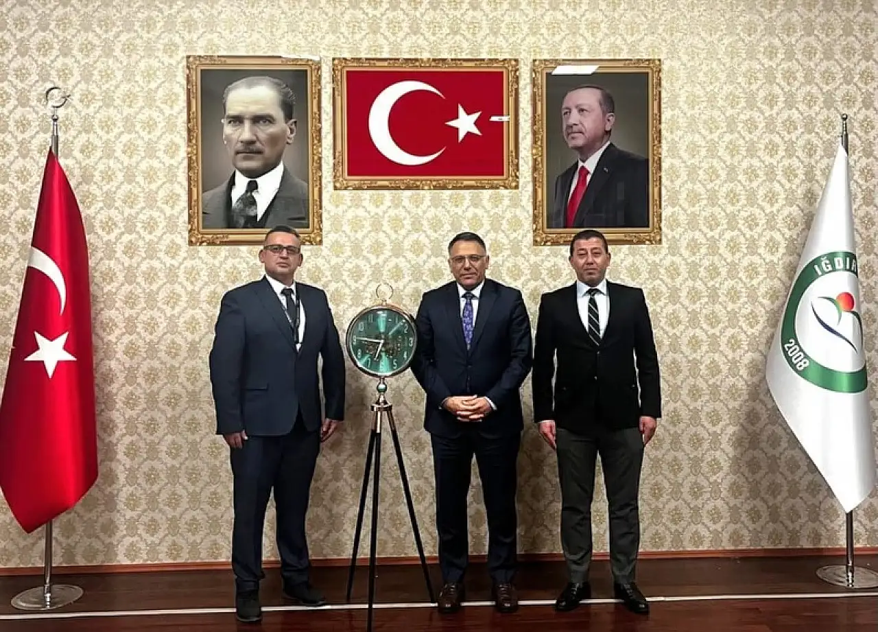 Iğdır Üniversitesi Rektörü Ekrem Gürel, Üniversitemizin Güvenlikten Sorumlu Şube Müdürü Murat Can, Güvenlik Amiri Öztürk Yılmaz ve güvenlik şeflerini makamında kabul etti.