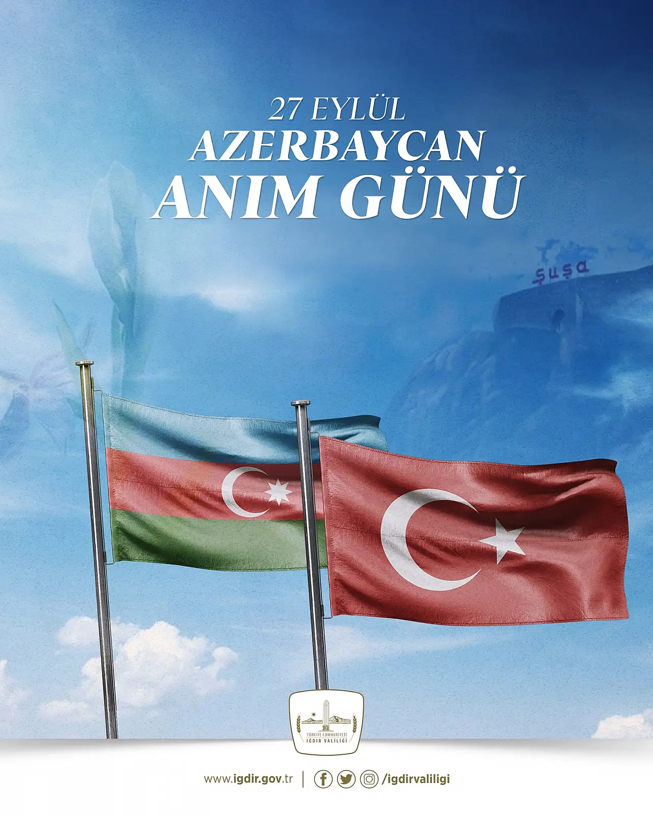Iğdır Valiliği, 27 Eylül Azerbaycan Anım Günü'nde yayımladığı mesajda Karabağ şehitlerini rahmetle andı ve Tek Millet, İki Devlet vurgusu yaptı.