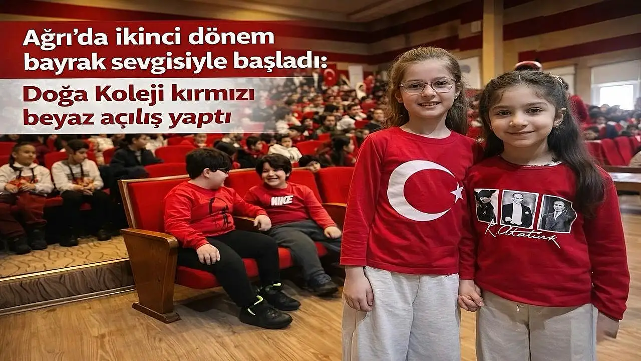 Ağrı'da ikinci dönem tüm okullarda 'Bayrak Sevgisi' temasıyla başladı. Doğa Koleji'nde ise kırmızı-beyaz temalı programla yeni döneme dikkat çeken bir açılış yapıldı.